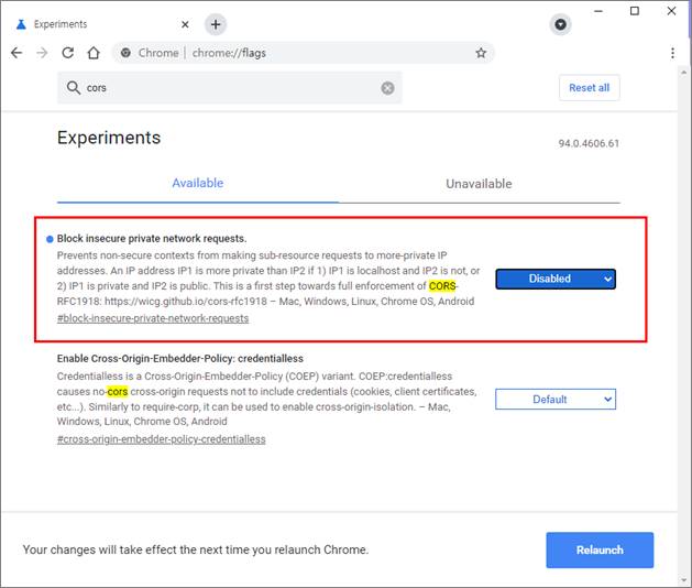최신 버전의 Chrome, MS Edge 브라우저에서 발생하는 Aqua nPlayer CORS 이슈에 대하여 임시조치방안을 아래와 같이 안내 드립니다. 아래 이미지를 참고하시어 Chrome 및 MS Edge에서의 설정 변경을 부탁드립니다.