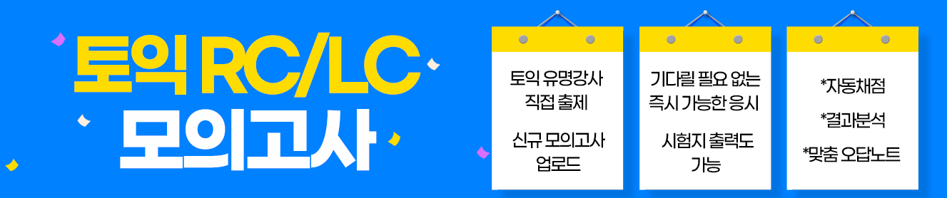 | 모의고사 [토익 1타 롸연샘]토익 【RC】 모의고사 6회차 | Reading Comprehensio카테고리 더보기 | 50문항 | 5,000원 |
