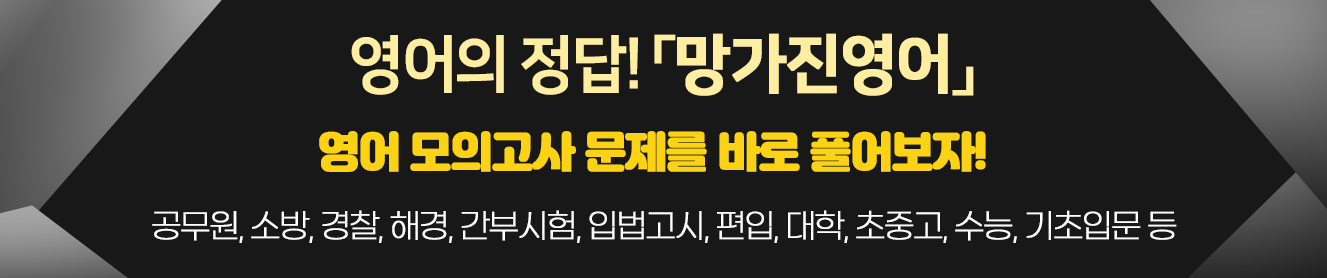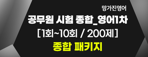 | 모의고사 망가진영어 공무원영어 통합 모의고사 1차 4회 | 영어카테고리 더보기 | 20문항 | 무료 |