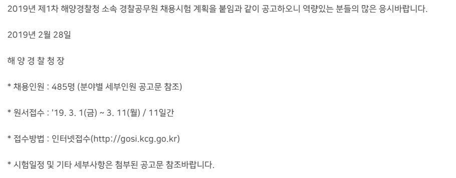 2019년 제1차 해양경찰청 소속 경찰공무원 채용 공고