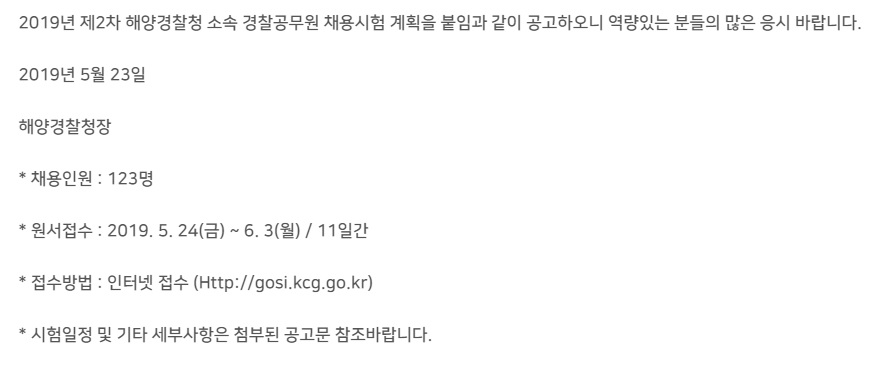 2019년 제2차 해양경찰청 소속 경찰공무원 채용 공고
